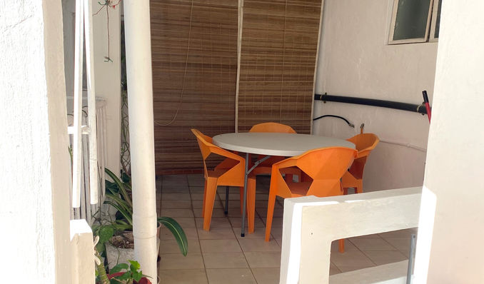La case coco : d'une surface de 18 m², elle est située au 1er étage de notre bâtisse. Elle est composée d’une chambre (lit double), avec un lavabo, un coin cuisine (équipée) avec bar à l’américaine, d'une douche 90/90, et d’un WC indépendant. Le studio est équipé d’un écran LCD avec TNT, d’un ventilateur et d’une climatisation. Vous serez séduits par sa grande terrasse donnant sur arrière-cour lui assurant toute intimité.
